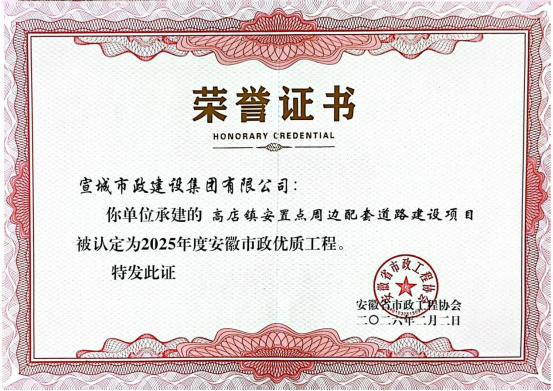 近日,集團公司承建的“高店鎮(zhèn)安置點周邊配套道路建設項目”榮獲2025年度“安徽省市政工程協(xié)會安徽市政優(yōu)質工程獎”。此次獲獎,既是對工程實體質量的認可,更是對項目全周期精益管理與技術創(chuàng)新應用的充分肯定。該項目高質量竣工投用后,不僅顯著改善了安置區(qū)居民的出行條件、提升了片區(qū)綜合承載能力,其配套完善的管網體系與生態(tài)景觀設計,更有力助推了區(qū)域環(huán)境的整體升級與城市功能的有機更新,生動詮釋了“城建為民”的初心。